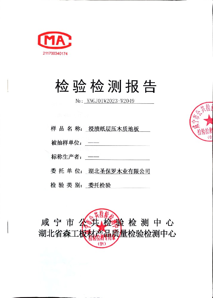 1221*193*15mm超耐磨實木復合地板檢測報告